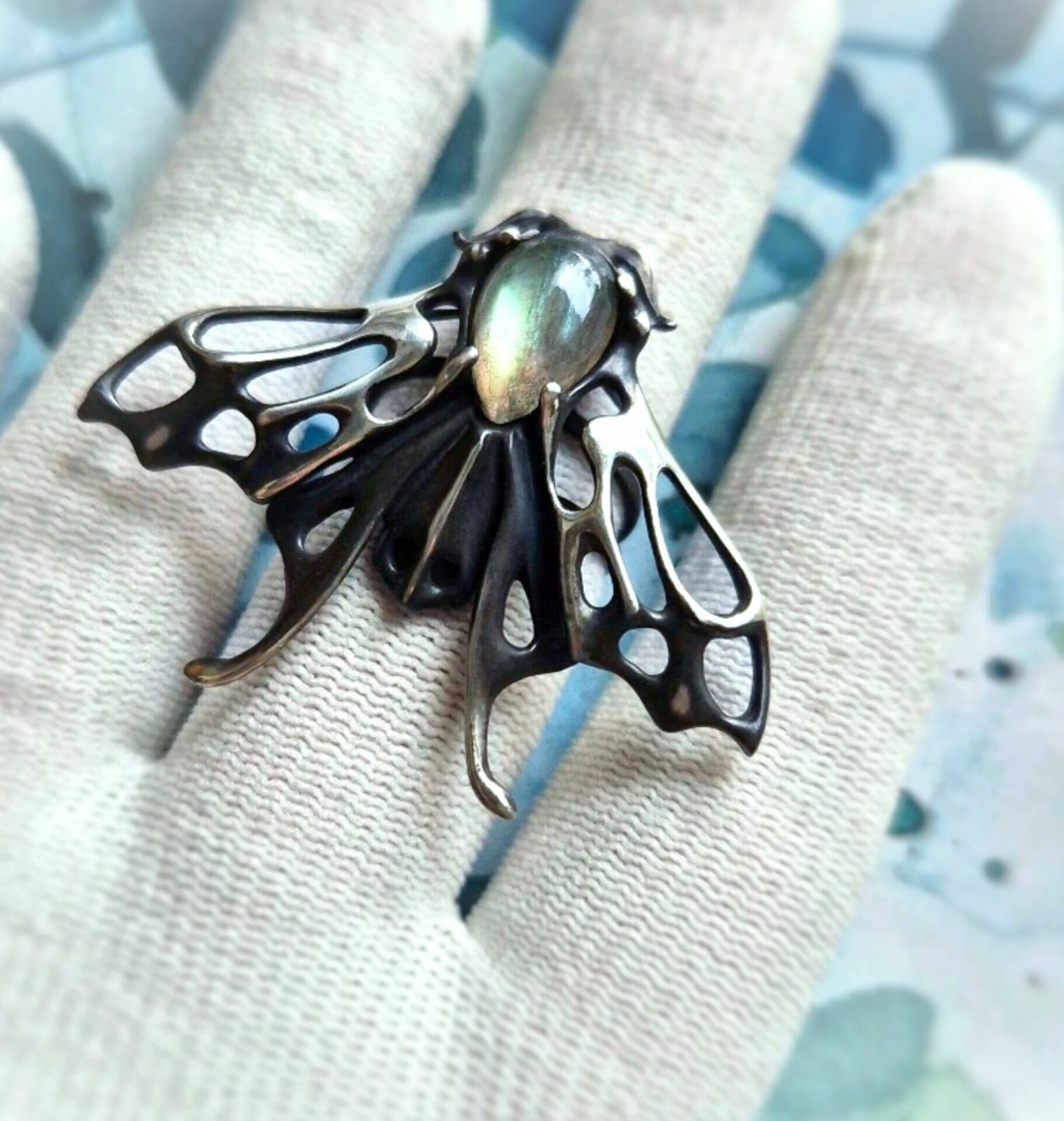 Every creation begins as a hand-sculpted original, then it is cast in sterling silver, becoming wearable art