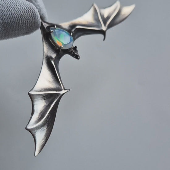 Collier chauve-souris en argent – Opale éthiopienne naturelle – Bijou symbolique en argent fait main