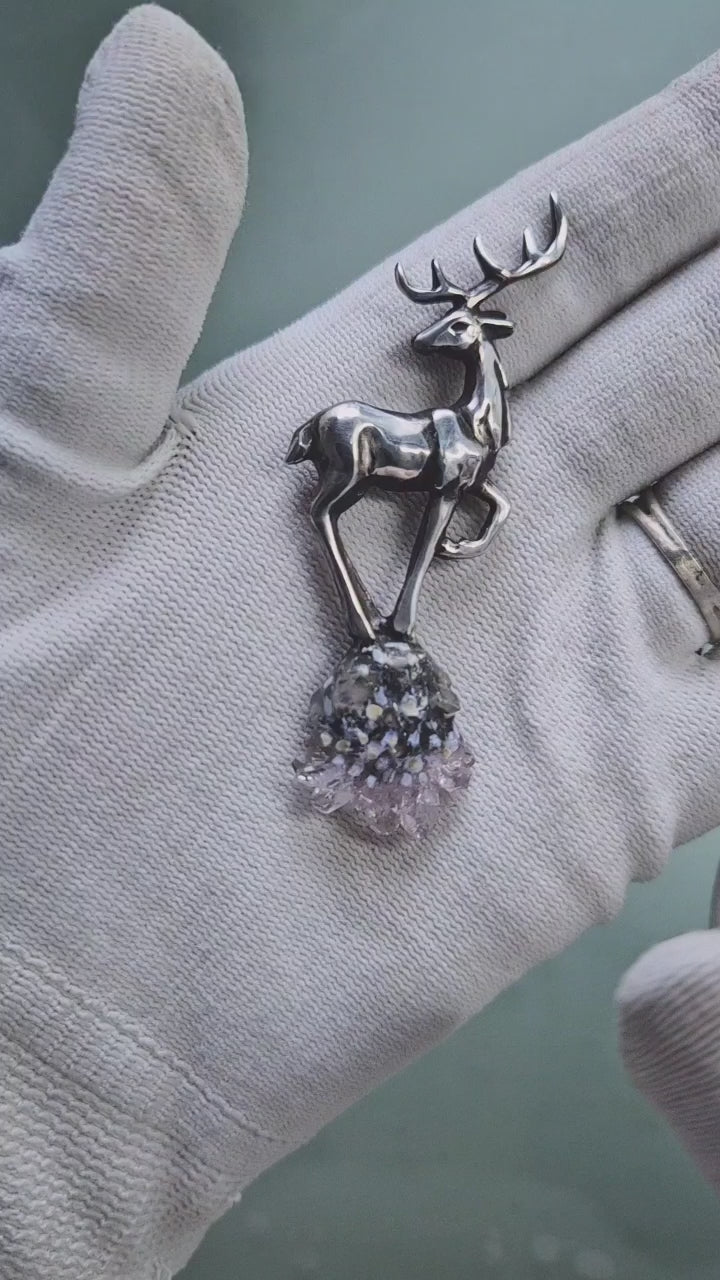 Deer necklace - Amethyst crystal - Handmade silver jewelry