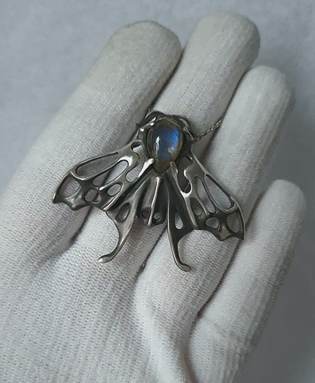Moth Necklace – Labradorite gem - Handmade symbolic silver jewelry