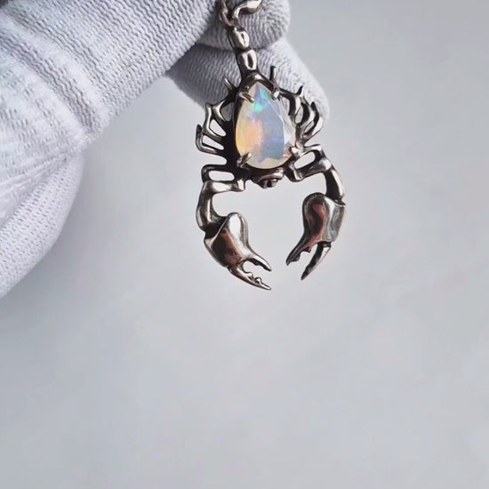 Scorpion necklace in Sterling Silver - Opal gem - Ready to ship