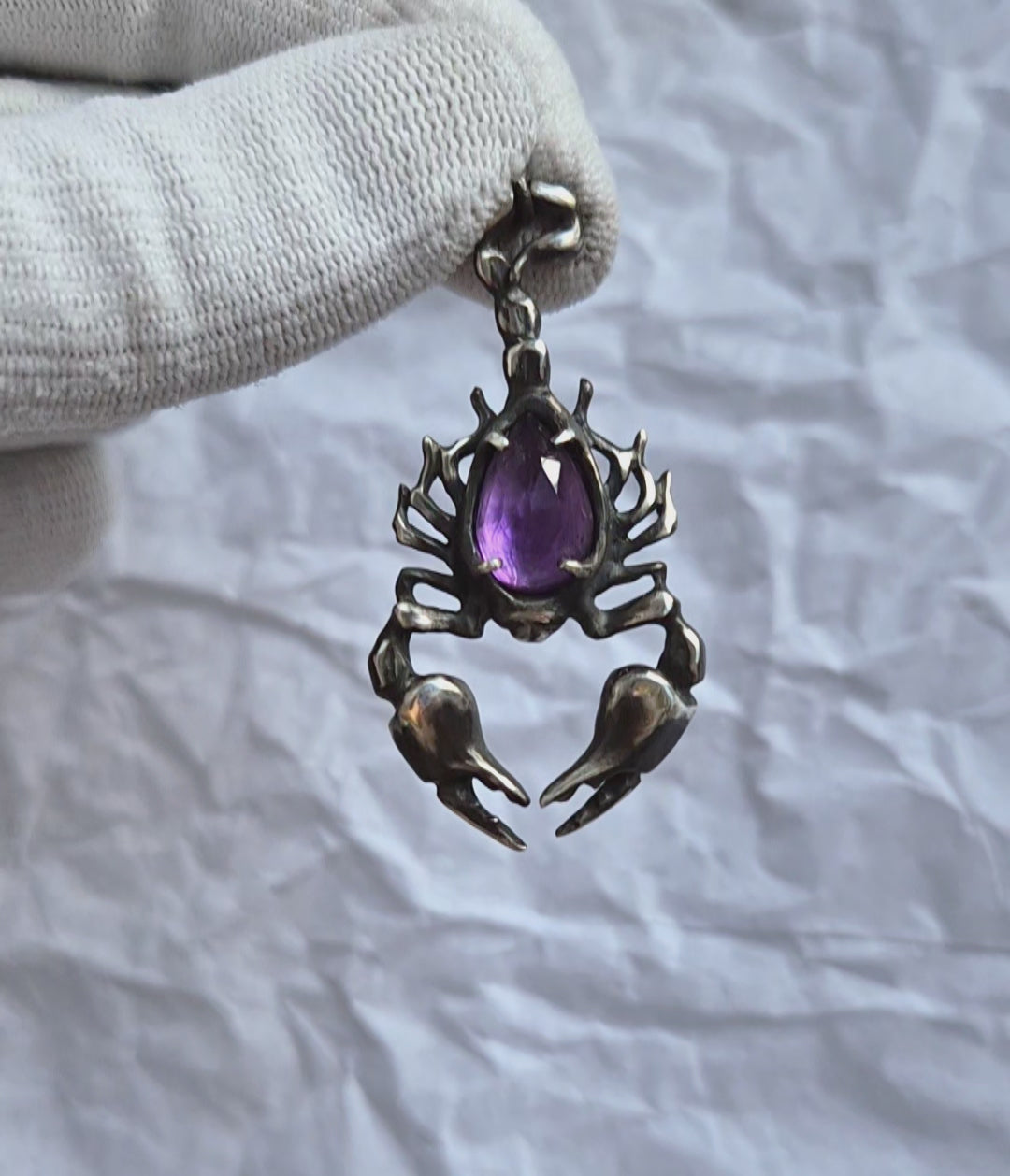 Silver Scorpion necklace 'Purple fog', ready to ship