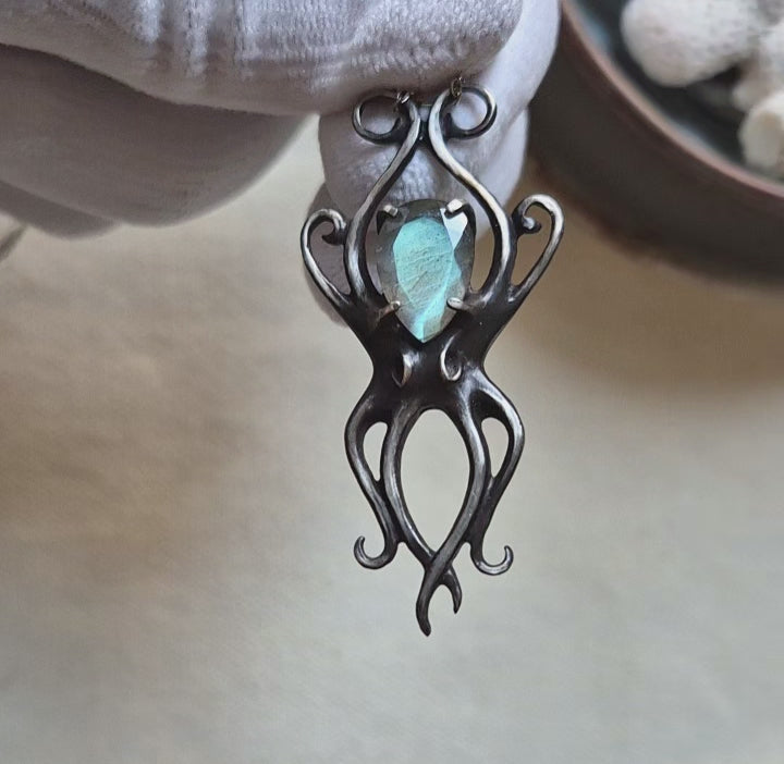 Silver Octopus necklace - Blue or Cyan Labradorite - Handmade jewelry