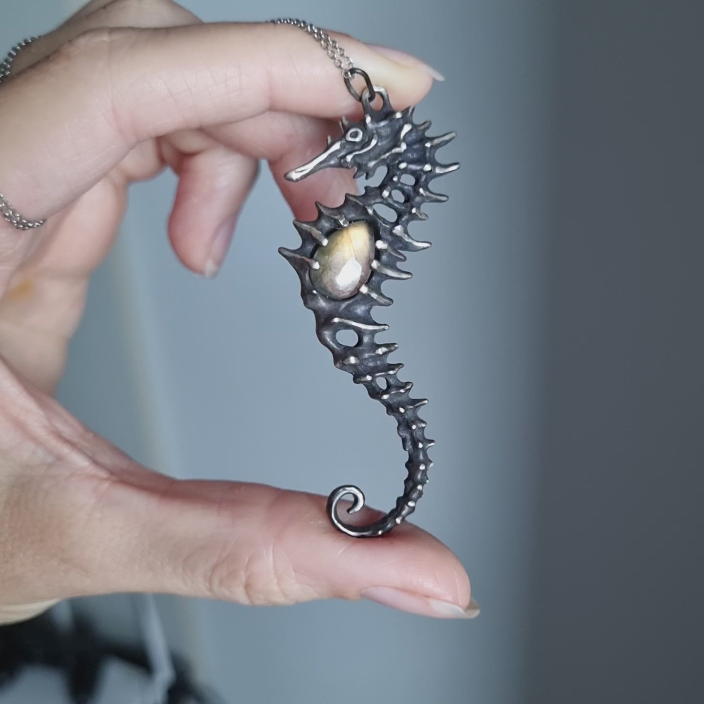 Silver Seahorse necklace - Golden Labradorite - Made to order Handmade silver jewelry