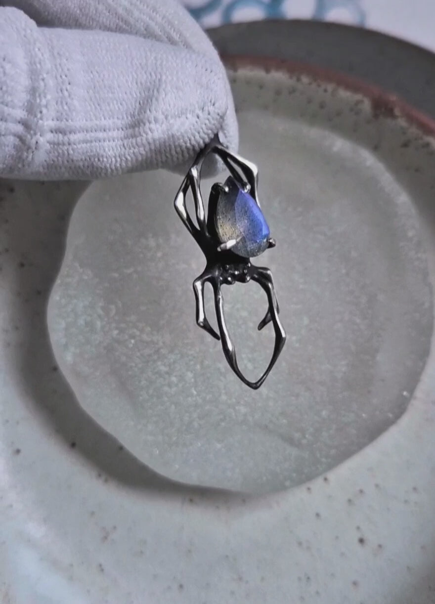 Silver spider Necklace – Blue Labradorite gem - Handmade oxidized silver jewelry