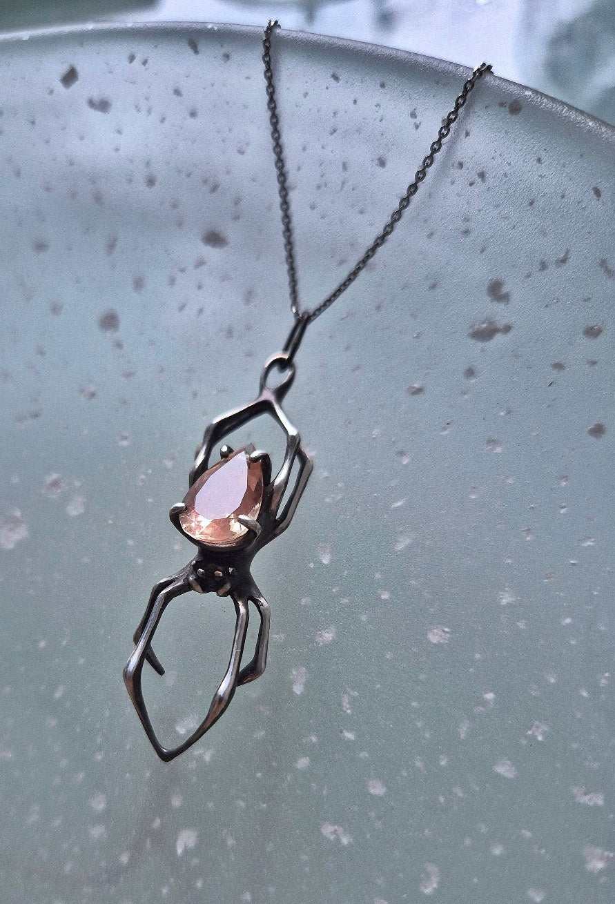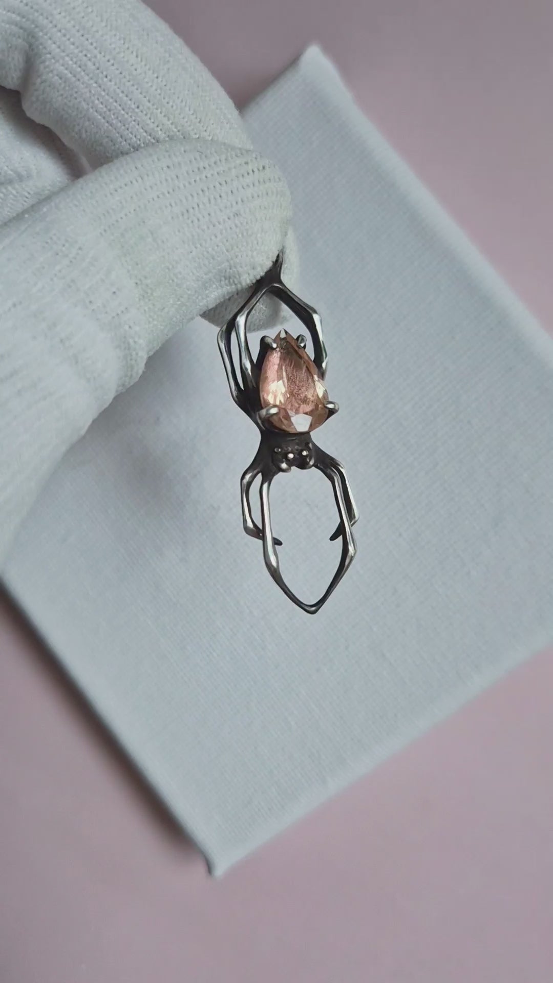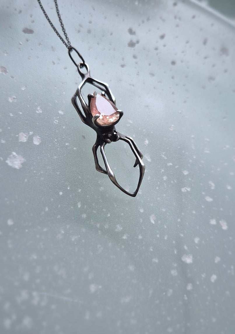 Spider Necklace in Sterling silver – Oregon Sunstone gem - One-of-a-kind / Ready to ship