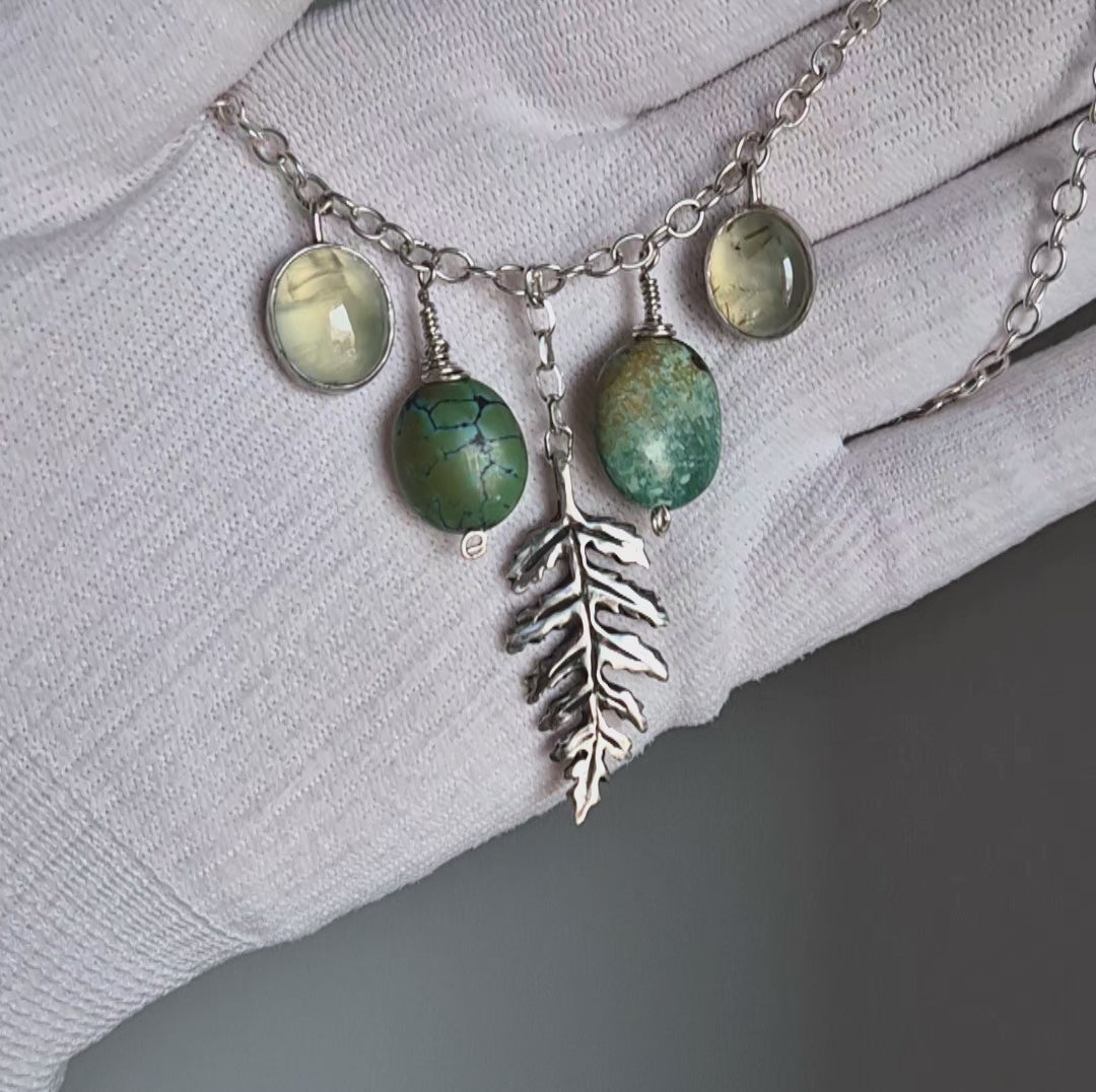 Turquoise Necklace - Natural turquoise and prehnites - Nature-inspired Leaf necklace